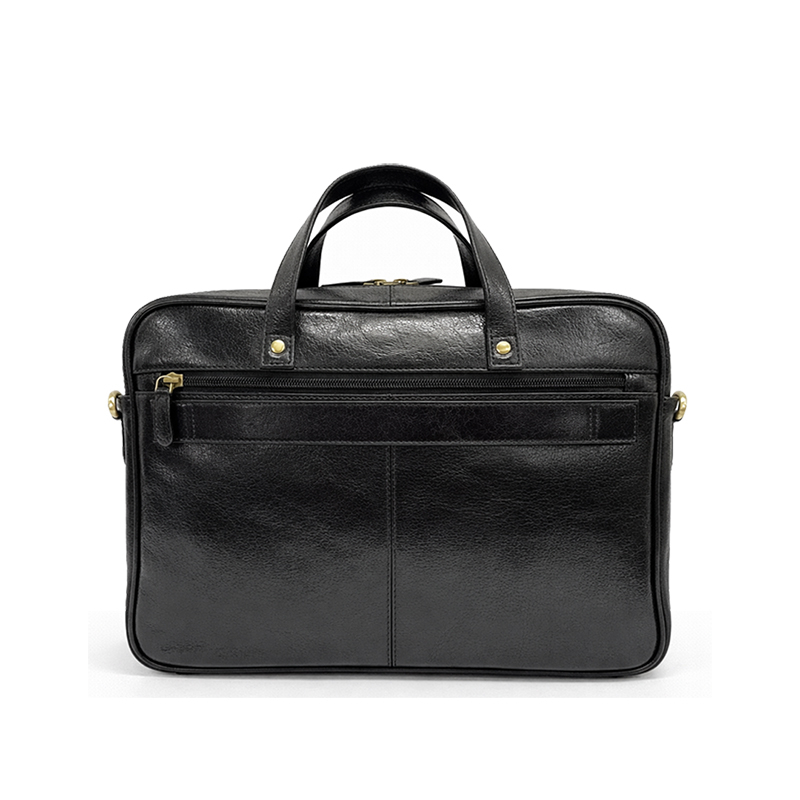 Crafted in premium black buff leather with antique brass hardware, this executive laptop bag is designed for professionals who value understated luxury and functionality.