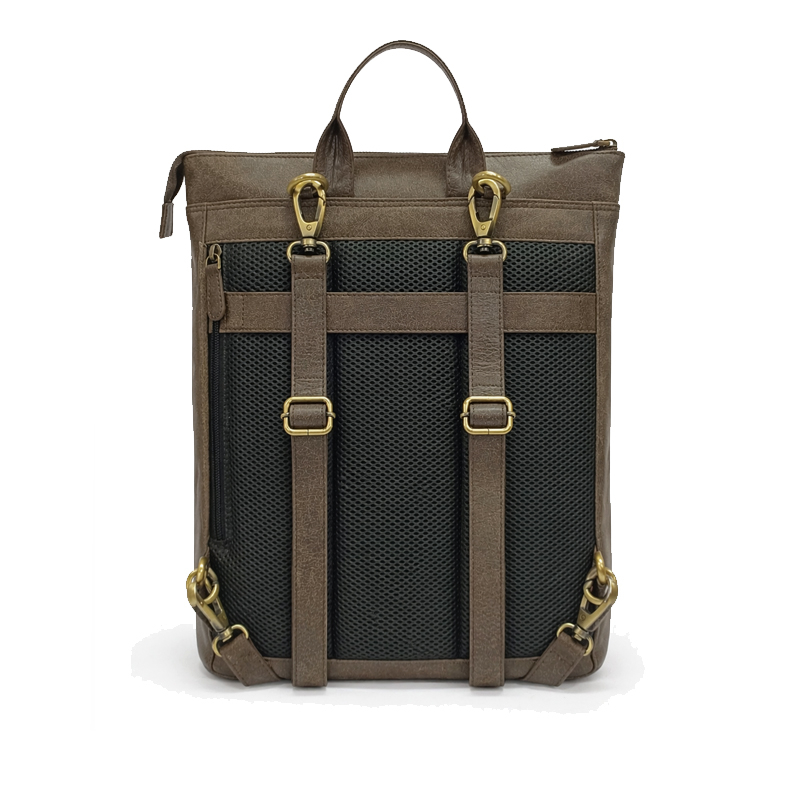 Designed for the minimalist who carries only the essentials, this backpack features an incredibly thin, vertical profile that mimics a high-end laptop sleeve with the convenience of shoulder straps. The distressed Warm Grey leather provides a vintage, rugged character that contrasts beautifully with its modern, architectural shape.